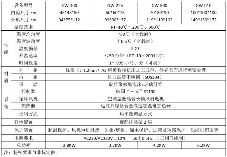 高溫恒溫試驗箱箱體內膽均采用不銹鋼鏡面板(或拉絲板)氬弧焊制作而成,箱體外膽采用優質鋼板噴塑處理,造型美觀新穎。熱風循環系統由能在高溫下連續運轉的風機和特殊風道組成,工作室內溫度均勻。獨立限溫報警系統,超過限制溫度即自動中斷,保證實驗安全運行不發生意外。設有大面積鋼化玻璃觀察窗,供觀察工作室狀況之用。